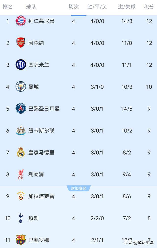 วันที่ 6 พฤศจิกายน เวลาปักกิ่ง,การแข่งขันรอบที่สี่ของยูฟ่าแชมเปียนส์ลีกได้สิ้นสุดลงแล้ว โดยการแข่งขันล่าสุดจบลงด้วยผลที่น่าตกใจเมื่อเชลซีเสมอกับทีมรองบ่อนอย่างคาราบัค 2-2 แมนเชสเตอร์ ซิตี้โชว์พลังยิงถล่มทีมแกร่งจากบุนเดสลีกาอย่างโบรุสเซีย ดอร์ทมุนด์ 4-1 อินเตอร์ มิลานเอาชนะคู่แข่งที่อ่อนกว่าอย่างไคราท อัลมาตี้ 2-1 อย่างหวุดหวิดแม้จะฟอร์มไม่ดี และบาร์เซโลนาต้องพบกับความพ่ายแพ้อย่างน่าประหลาดใจเมื่อเสมอกับทีมรองบ่อนอย่างคลับ บรูจจ์ 3-3ดังนั้น อันดับล่าสุดได้รับการอัปเดตแล้ว: อินเตอร์ มิลาน อยู่ในอันดับที่สามด้วยชัยชนะติดต่อกันสี่นัด, แมนเชสเตอร์ ซิตี้ อยู่ในอันดับที่สี่ด้วยสถิติไม่แพ้ใครในสี่นัด, ขณะที่บาร์เซโลนาอยู่ในอันดับที่สิบเอ็ด!