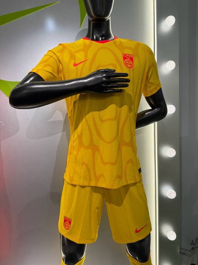 เมื่อเทียบกับเกมทั่วไปในบ้านสีแดง ในไม่กี่ปีที่ผ่านมา ในบรรดาอุปกรณ์ที่เพิ่งเปิดตัว ชุดทีมเยือนสีเหลืองนั้นสะดุดตากว่า เป็นที่เข้าใจกันว่าการเลือกสีเหลืองส่วนใหญ่เป็นเพราะมีความสัมพันธ์ที่ลึกซึ้งกับวัฒนธรรมจีนและเสื้อเจอร์ซีย์ยังตกแต่งด้วยลวดลายสีเข้มของสีเดียวกันซึ่งออกแบบด้วยลวดลายดั้งเดิมเป็นแรงบันดาลใจและพื้นผิวมีความละเอียดอ่อนมากขึ้น ในเวลาเดียวกัน โลโก้สปอนเซอร์และตราสัญลักษณ์สมาคมฟุตบอลจีนประดับด้วยองค์ประกอบสีแดง เพื่อให้มั่นใจว่าเสื้อเหย้าจะสามัคคีกัน