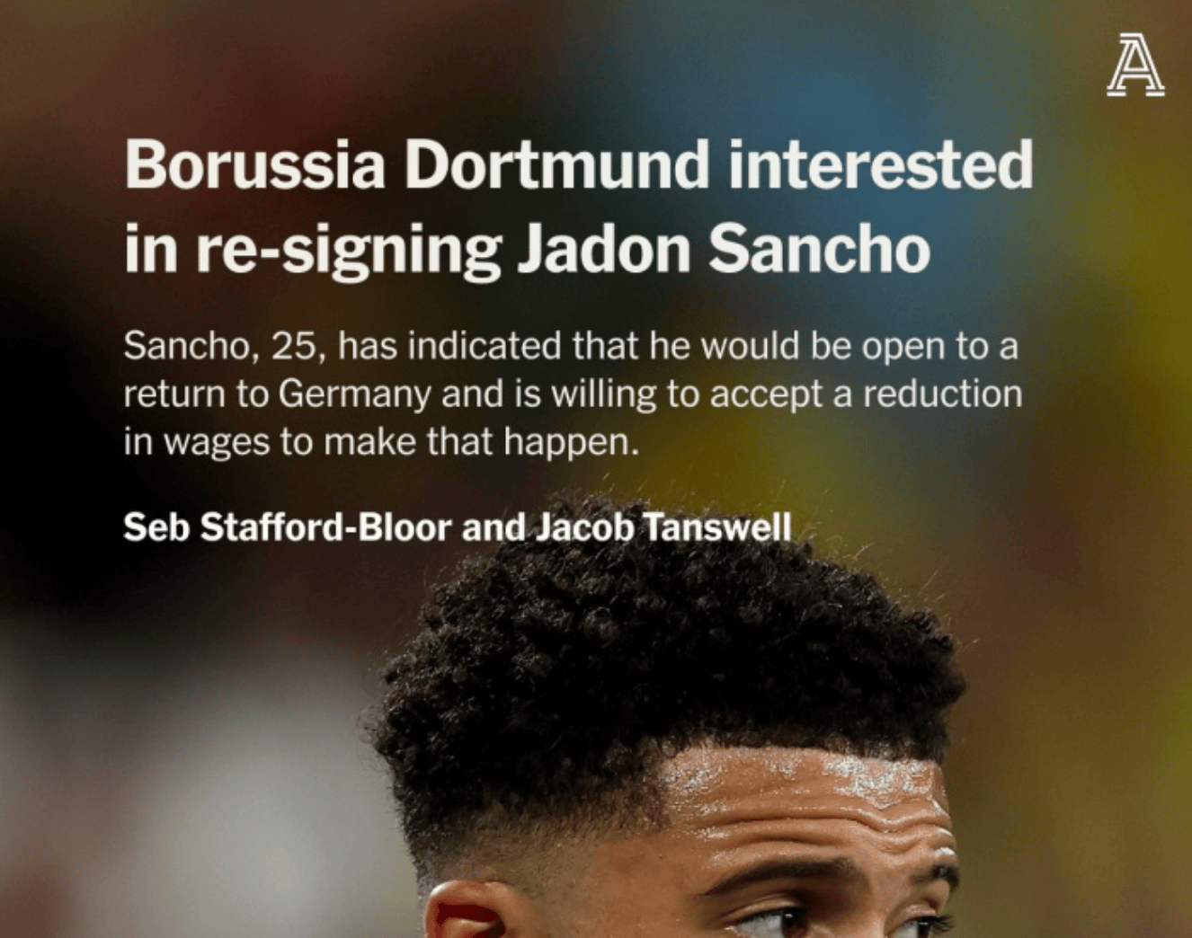 สัญญาระหว่างซานโช่และแมนเชสเตอร์ ยูไนเต็ด จะหมดอายุในฤดูร้อนนี้ และเขามีสิทธิ์ต่ออายุสัญญาล่วงหน้าหนึ่งปีในสัญญานี้ แต่แมนเชสเตอร์ ยูไนเต็ด มีแนวโน้มที่จะไม่เปิดใช้งานมาตรานี้ มิฉะนั้นพวกเขาจะอยู่กับซานโชได้อย่างสมบูรณ์ ยิ่งไปกว่านั้น ผลงานของ Sancho ในช่วงสองสามฤดูกาลที่ผ่านมาสามารถเห็นได้จริง เขาไม่เหมาะกับสภาพแวดล้อมของเกมในพรีเมียร์ลีก และการขาดคุณสมบัติทางเทคนิคที่รวดเร็วอย่างแท้จริงทำให้เขาไม่สามารถใช้ความสามารถของเขาในตำแหน่งปีกได้ และความสามารถในการเผชิญหน้าทางกายภาพของเขาไม่มีข้อได้เปรียบ เป็นการยากที่จะเล่นผลงานของดอร์ทมุนด์