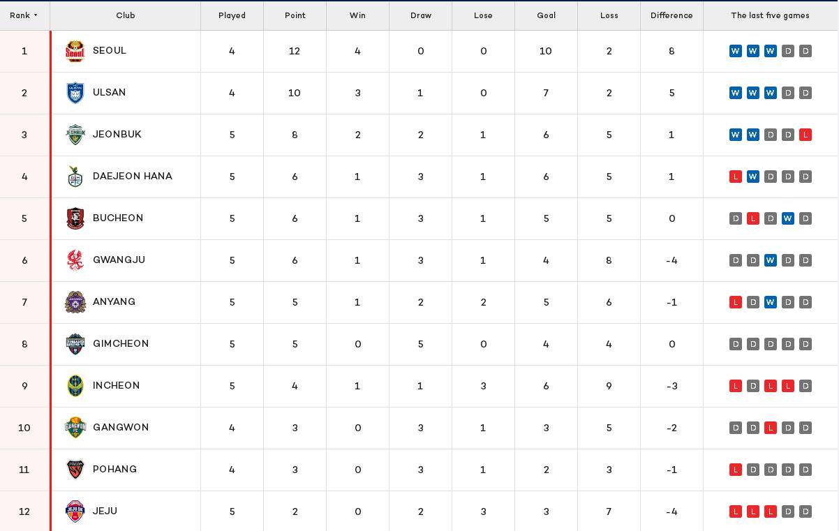 หลังจากผ่านไปห้ารอบ โซล หนึ่งเกมน้อยกว่า ไปถึงยอดด้วยชัยชนะสี่นัดติดต่อกัน ตามด้วยอุลซาน จอนบุค และดาเทียน โดยพื้นฐานแล้วสี่ทีมนี้ประกอบขึ้นเป็นกลุ่มแชมป์ในฤดูกาลนี้ ชัยชนะของอินชอนยังทำให้มีเพียงสามทีมในลีก K1 ที่ยังไม่ชนะ K1 League มีเพียงสามทีมเท่านั้นคือ Gangwon, Pohang และ Jeju และรูปแบบขั้วของลีกได้ปรากฏขึ้นแล้ว ด้วยการมาถึงของวันเกมทีมชาติ K1 League จะเข้าสู่ช่วงพัก และคาดว่าจะจุดไฟในสงครามอีกครั้งในเดือนเมษายน ช่วงที่โพฮังจะมีคู่แต่งหน้ากับกังวอน ไม่รู้ใครจะชนะชัยชนะครั้งแรกในการแข่งขันครั้งนี้