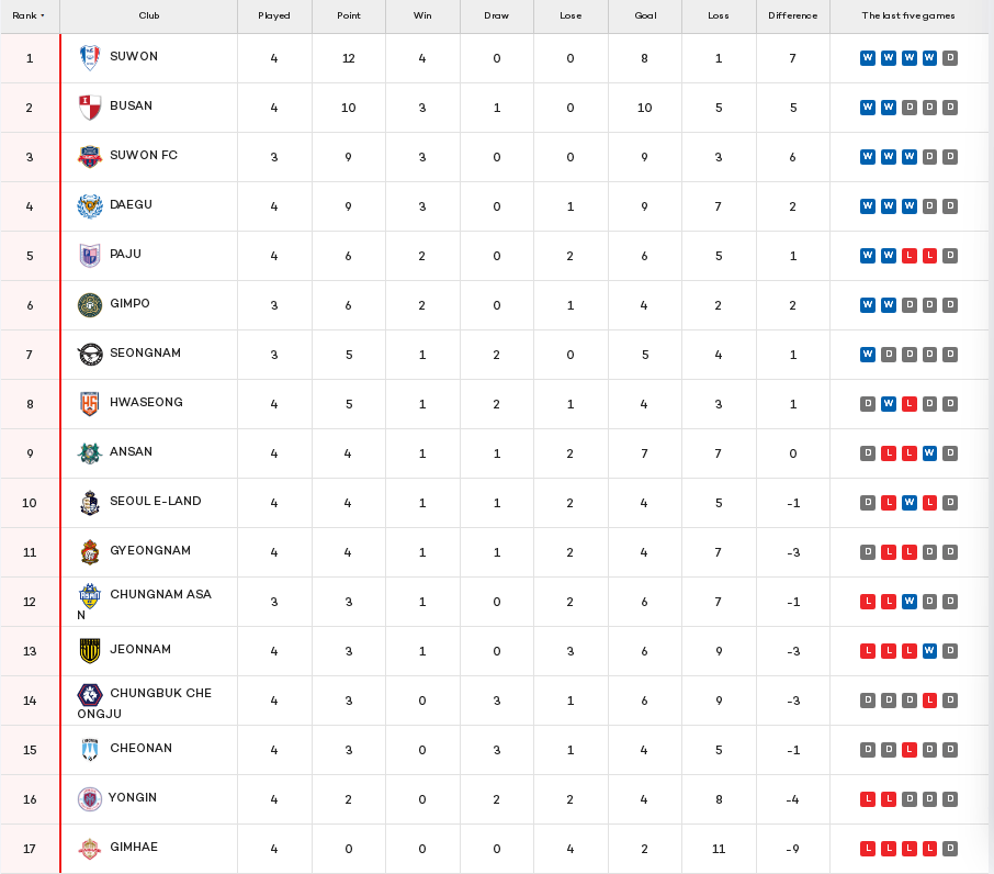 เชจูซึ่งอยู่ด้านล่างสุดของลีก อยู่ห่างจากชัยชนะเพียงก้าวเดียว พวกเขาเคยนำทีม Jiangyuan FC ออกไปในเกมเยือน แต่ในช่วงทดเวลาเจ็บ ผู้ช่วยต่างชาติของ Gangwon ใช้ลูกบอลนางฟ้าเพื่อจบการเสมอ และในที่สุดก็ช่วยให้ทีมได้รับคะแนน 1-1 ที่น่าตื่นเต้น แม้ว่าทั้งสองทีมจะยังไม่ชนะในฤดูกาลนี้ แต่การจับฉลากครั้งนี้ทำให้กันและกันมีความหวัง