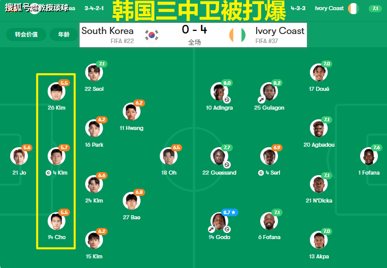 ในการเผชิญกับความเร็วของความเร็วของผู้เล่นปีกของ Cote d'Ivoire และการระเบิดของแต่ละคน แนวรับของทีมเกาหลีใต้ก็ยุบเหมือนกระดาษวาง