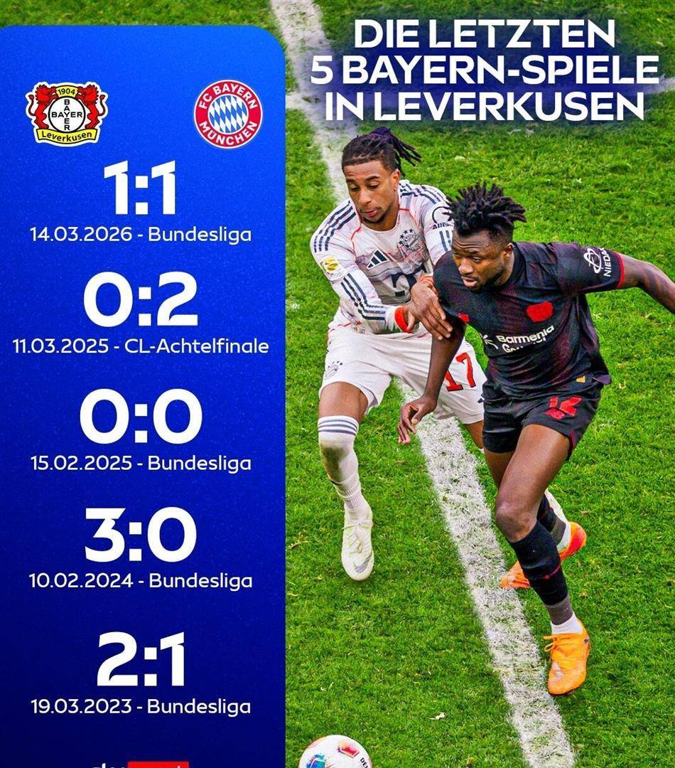 เลเวอร์คูเซ่นมีสถิติที่แข็งแกร่งมากในศึกฟุตบอลเยอรมันในช่วงสามฤดูกาลที่ผ่านมา 2023-2024 ชนะในฤดูกาลชิงแชมป์ 6 เกมในฤดูกาล 2024-2025 อุบัติเหตุตกในรอบรองชนะเลิศและผลการแข่งขันโดยรวมคือชนะ 4 และแพ้ 1 ครั้ง; ฤดูกาล 2025-2026 สิ้นสุดรอบรองชนะเลิศ 4 เกมชนะทั้งหมด 4 เกม ซึ่งหมายความว่าในช่วงสามปีที่ผ่านมาในเยอรมันคัพในช่วงสามปีที่ผ่านมานับตั้งแต่ฤดูกาล 2023-2024 เลเวอร์คูเซ่นแพ้ 14-1 และอัตราการชนะ 93 ประสิทธิภาพสูงสุด 33% แต่นอกเหนือจากข้อมูลของ German Cup แล้ว บริษัทยาสามารถพูดได้เพียงว่าเป็นเรื่องทั่วไปมาก