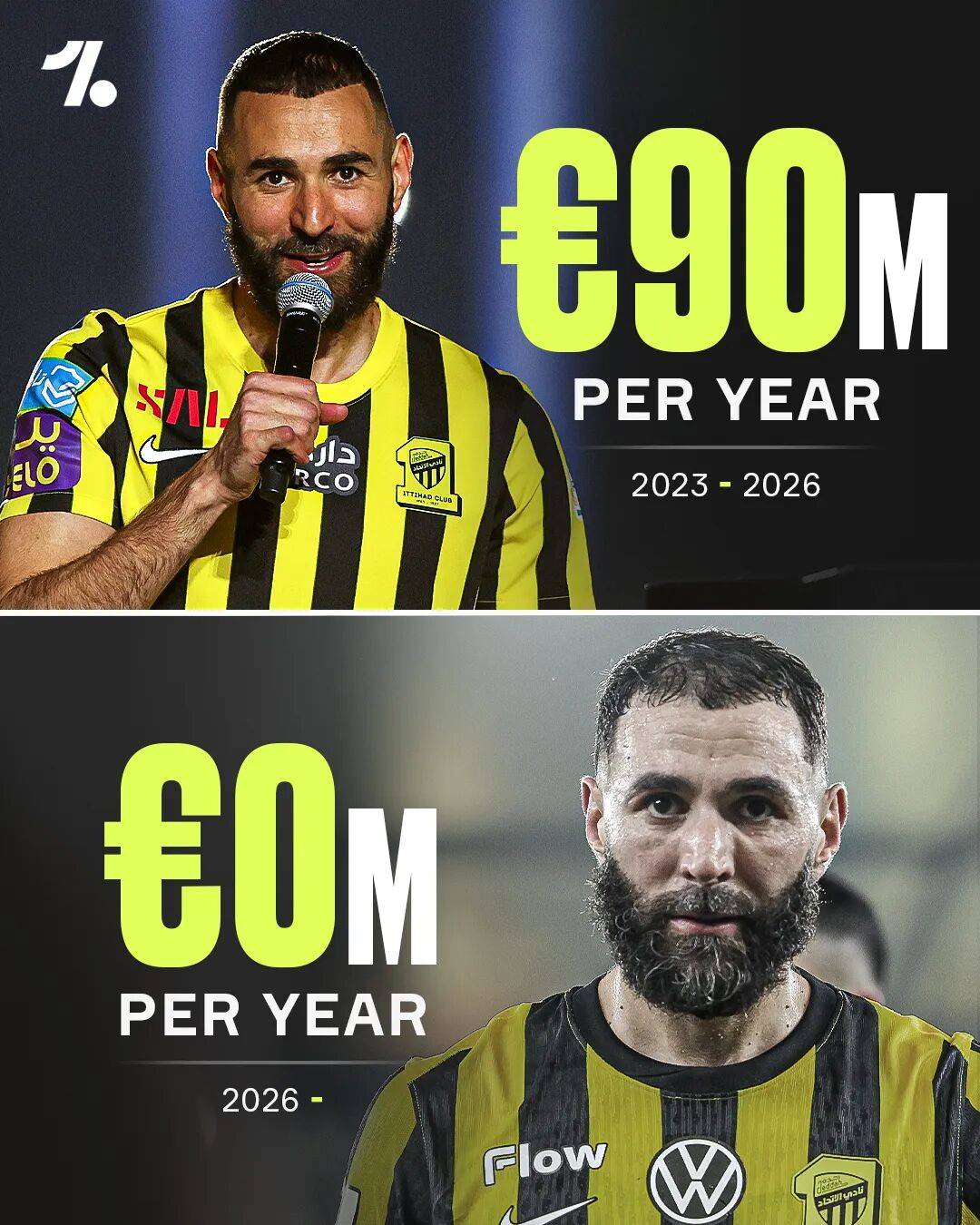 นับตั้งแต่เข้าร่วมกับอัล-อิตติฮัดในช่วงฤดูร้อนปี 2023 คาริม เบนเซม่า ได้กลายเป็นนักเตะดาวเด่นของสโมสร โดยมีค่าเหนื่อยปีละ 100 ล้านยูโรหลังหักภาษี พร้อมรายได้จากลิขสิทธิ์ภาพลักษณ์จำนวนมาก เมื่อเดือนพฤศจิกายนที่ผ่านมา เบนเซม่าได้กล่าวว่าในวัยเกือบ 38 ปี เขายังสามารถเล่นฟุตบอลได้อีกสองปี แม้ว่าอนาคตของเขาในซาอุดีอาระเบียจะขึ้นอยู่กับเงื่อนไขการต่อสัญญา เนื่องจากสโมสรในยุโรปยังคงให้ความสนใจในตัวเขา