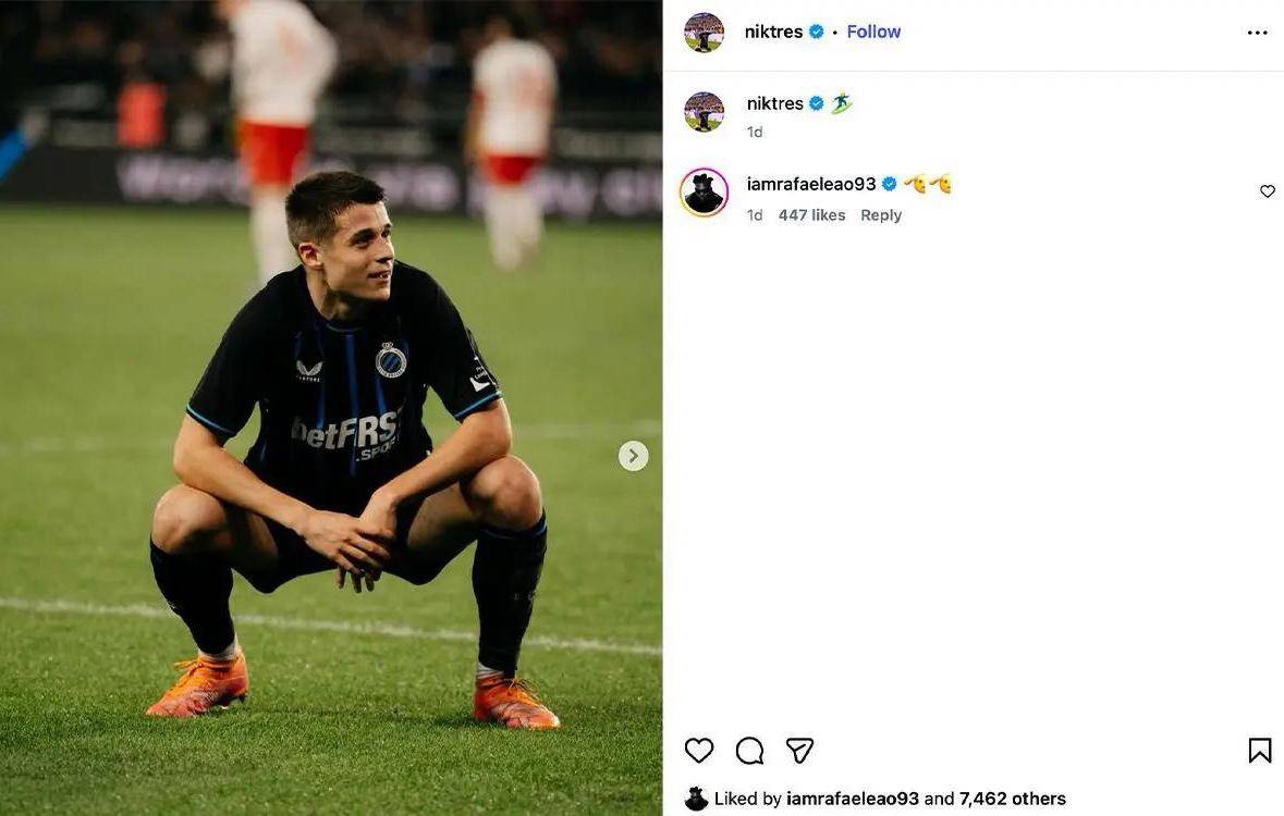 ความชื่นชอบของกองหน้าตัวเก่งของสโมสรบรูจส์ เทรเซเก้ต ที่มีต่อเอซี มิลาน ไม่ใช่ความลับอีกต่อไป โดยกองหน้าวัย 21 ปีที่มีผลงานการทำประตูอย่างยอดเยี่ยมได้แสดงจุดยืนของเขาในหลายโอกาสเมื่อไม่นานมานี้ นักเตะชาวเยอรมันเพิ่งไปชมการแข่งขันที่สนามซานซิโรของมิลานกับเวโรนา และถ่ายภาพร่วมกับเลเอาอย่างกระตือรือร้น เมื่อกลับมาที่ลีกโปรเบลเยียมและทำประตูได้ เขายังเลียนแบบการเฉลิมฉลองประตูของ 'เจ้าชายรอยยิ้ม' อีกด้วย