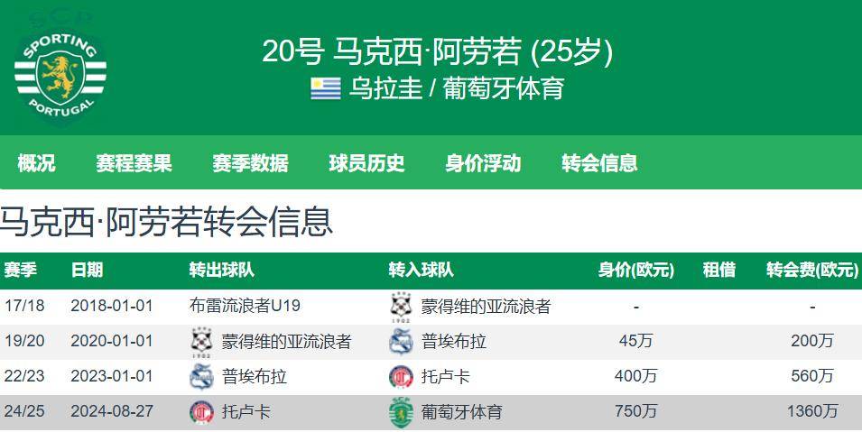 สโมสรฟุตบอลโปรตุเกสมีชื่อเสียงในด้านการประเมินมูลค่าที่สูงเกินจริง โดยมักจะติดป้ายราคาที่แพงลิบลิ่วให้กับผู้เล่น ตามรายงานล่าสุดจากสื่อโปรตุเกส A Bola ยักษ์ใหญ่จากอิตาลีอย่างยูเวนตุสกำลังสนใจที่จะเซ็นสัญญากับแม็กซี่ อเราโฆ แบ็คซ้าย อย่างไรก็ตาม สปอร์ติ้ง ซีพี ได้ตั้งราคาขายนักเตะรายนี้ไว้ที่ 80 ล้านยูโร ในขณะที่มูลค่าตลาดของเขาถูกประเมินไว้ที่ 22 ล้านยูโร