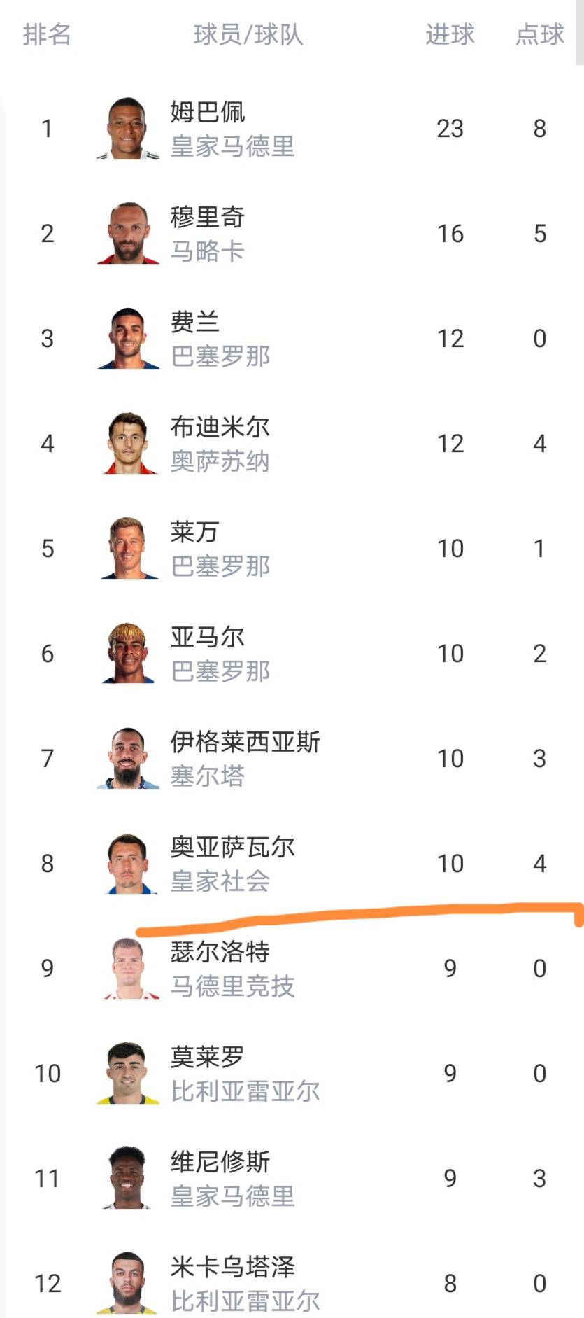 ผู้ทำประตูสูงสุดยังคงเป็น คีเลียน เอ็มบัปเป้, เฟร์ราน ตอร์เรส และอีกหกคน ซึ่งทั้งหมดทำประตูได้สิบประตูหรือมากกว่า