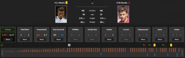 (มิดฟิลด์สามคนของมิลานค่อนข้างกระตือรือร้น และโมดริชมีค่ามากกว่า และราบี ออทฟอร์ดก็มีค่ามากกว่า ตรงกันข้าม อินเตอร์ค่อนข้างมีกรอบ)