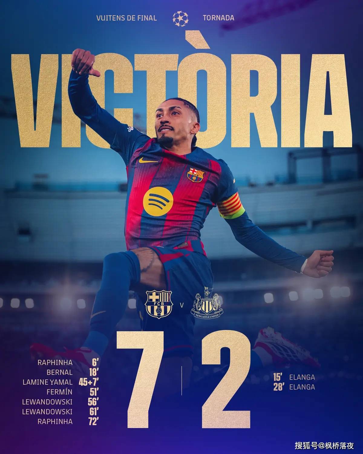คืนนั้นชาวบราซิลที่ทำลูก 5 ลูกสะท้อนเงาของเมสซี่อย่างคลุมเครือ ด้วย 2 ประตูและ 3 แอสซิสต์ ราฟิเนียบอกกับยุโรปด้วยผลงานที่สมบูรณ์แบบ: บาร์เซโลนาไม่เพียงแต่มีอัจฉริยะอย่างยามาลเท่านั้น แต่ยังมี "อาวุธนิวเคลียร์ปีก" ที่จุดสูงสุด การวิ่งทุกครั้งที่เขาวิ่งไปเป็นการเยาะเย้ยแนวป้องกันของนิวคาสเซิ่ล—เป็นการเยาะเย้ยความภาคภูมิใจในการเผชิญหน้าร่างกาย ความซุ่มซ่ามเมื่อเผชิญกับเทคโนโลยีที่แท้จริง