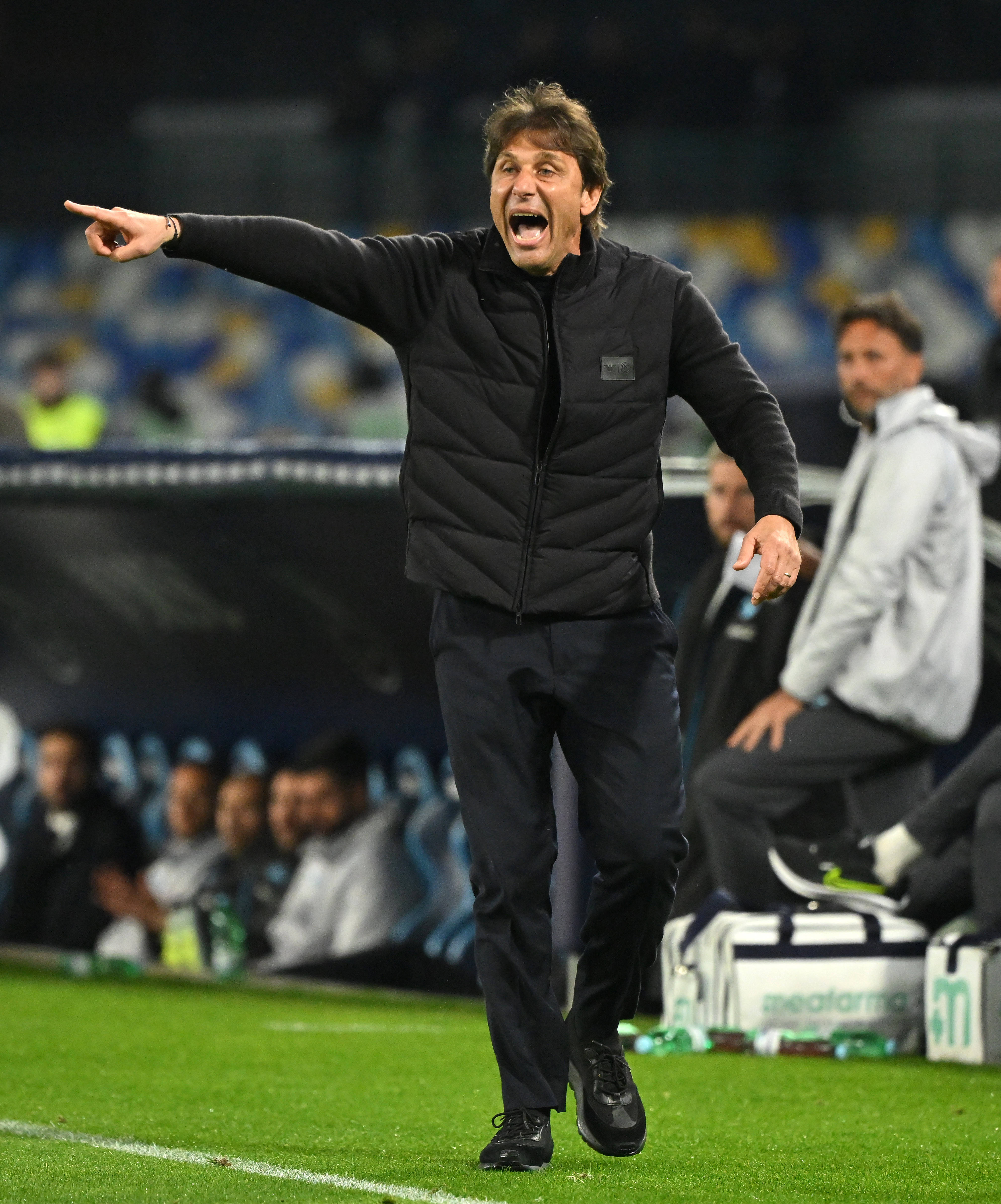 เมื่อวันที่ 6 เมษายน โค้ชคอนเต้ของเนเปิลส์อยู่ข้างสนาม สำนักข่าวซินหัว (ภาพโดย Alberto Linglia)