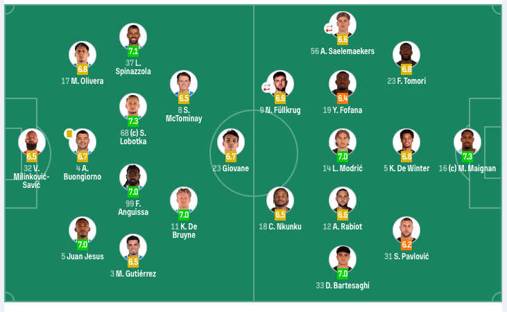 เนเปิลส์เริ่ม: 32-Vania, 5-Juan (85'31-Buickma), 4-Bonjeorno, 17-Oliveira, 3-Gitrez, 68-Lobotka, 99-Anguisa, 37-Spinazola (74'21-Politano), 11-dbruene (85'20-Ermas), 8-McTomai, 23-GiVani-AN