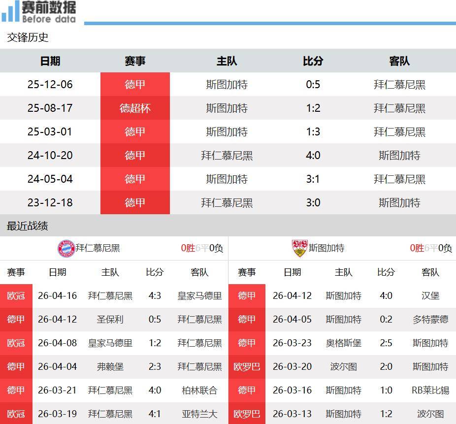 เมื่อเวลา 23:30 น. ในตอนเย็นของวันที่ 19 เมษายน ตามเวลาปักกิ่ง รอบที่ 30 ของบุนเดสลีกา นำจุดแข่งขันชิงแชมป์ บาเยิร์นจะเล่นกับสตุตการ์ตที่บ้าน CCTV5 CCTV5 จะถ่ายทอดสดเกม