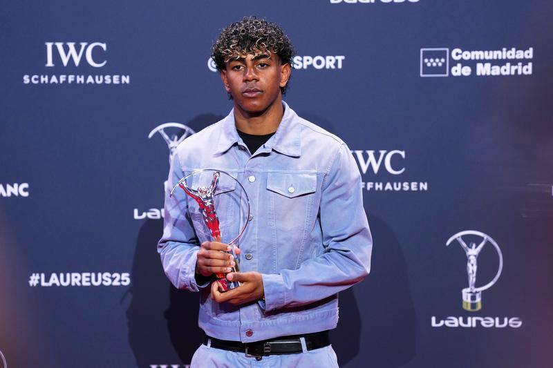(บรรทัดที่สองต่างประเทศ) (32) 2026 พิธีมอบรางวัลกีฬาลอว์เรนซ์เวิลด์ที่จัดขึ้นที่กรุงมาดริด ประเทศสเปน_ สำนักข่าวซินหัว_Yamar_Football Player