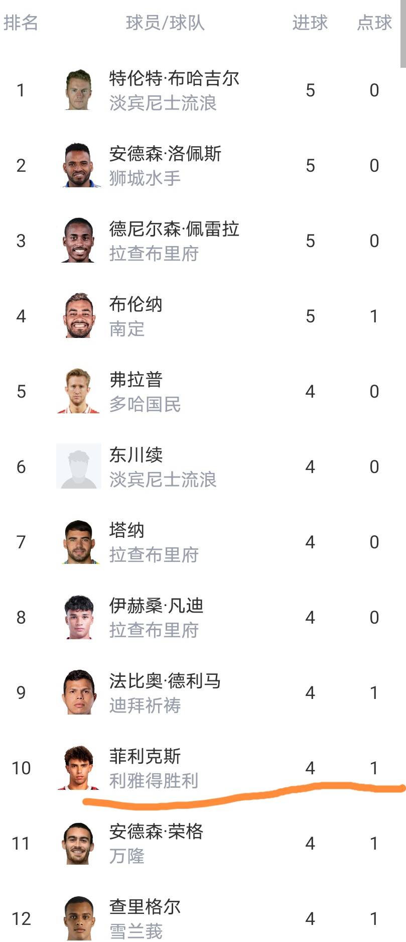 ในตารางคะแนน: มีผู้เล่นหลายคนที่มีระดับคะแนนเท่ากันที่ห้าประตูในอันดับต้น ๆ ขณะที่ เฟลิกซ์ จาก อัล นาสร์ ได้เข้าสู่สิบอันดับแรกด้วยสี่ประตู