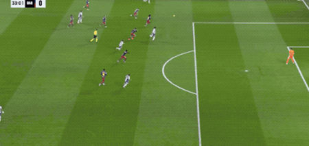 ในนาทีที่ 37 บาร์เซโลนาได้รับลูกฟรีคิกในแดนรุก ราฟินญ่าเปิดบอลเข้าไป แต่เฟร์ราน ตอร์เรสวิ่งเร็วเกินไปและต้องยืดตัวไปด้านหลังเพื่อโหม่งบอล ซึ่งบอลลอยออกไปข้างกรอบประตู