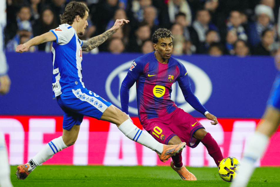 ในนาทีที่ 28 ยามาลได้รับบอลจากเอริค การ์เซีย ก่อนจะโชว์ลีลาหมุนตัวแบบมาร์กเซยเลียน หลบกองหลังไปอย่างเหนือชั้น แต่จังหวะยิงหรือเปิดบอลต่อของเขาหลังจากนั้นกลับไม่ตรงกรอบ