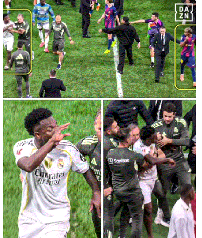 การโต้เถียงหลังการแข่งขันเต็มไปด้วยความตึงเครียด วินิซิอุสซึ่งต้องการยืนยันจุดยืนของตน ได้ทำท่าทาง 'เงียบ' เพื่อพยายามให้ยามาลาลเงียบ แต่ยามาลาลไม่ย่อท้อและตอบโต้ด้วยวาจาจากระยะไกล เห็นได้ชัดว่ายามาลาลไม่มีความตั้งใจที่จะยอมถอยง่ายๆเมื่อความตึงเครียดเพิ่มสูงขึ้น บรรยากาศก็ยิ่งตึงเครียดมากขึ้น วินิซิอุสปรากฏตัวเหมือนจะควบคุมตัวเองไม่ได้ เกือบจะลงมือใช้ความรุนแรงทางกายภาพกับยามาล หากไม่มีใครเข้ามาแทรกแซงอย่างรวดเร็ว สถานการณ์อาจลุกลามกลายเป็นความรุนแรงอย่างรุนแรง และอาจบานปลายกลายเป็นความวุ่นวายใหญ่โตได้