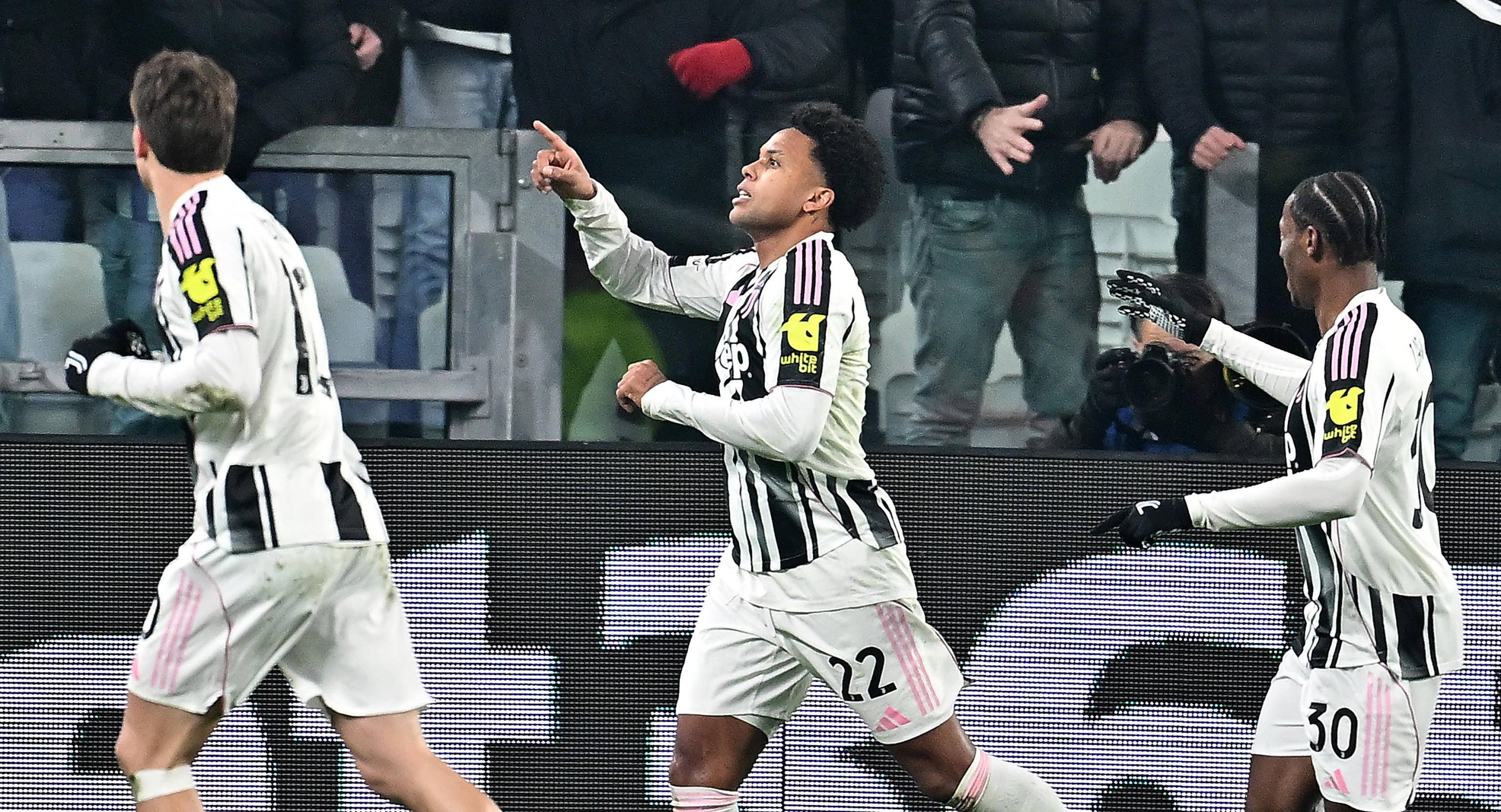 เมื่อวันที่ 21 มกราคม เวสตัน แม็คเคนนี่ นักเตะของยูเวนตุส ฉลองการทำประตู Xinhua/EPA