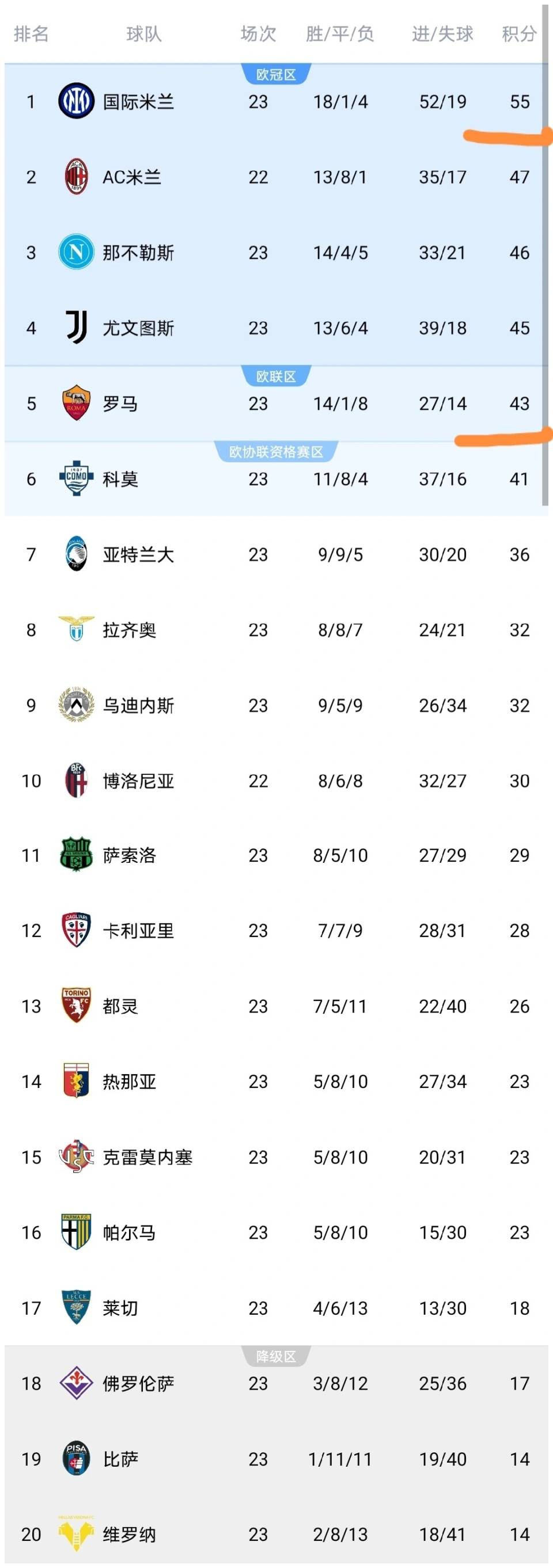 ผู้ที่มีความสุขที่สุดอย่างแน่นอนคือผู้นำในเซเรีย อา อินเตอร์ มิลาน!หลังจากความพ่ายแพ้ของโรม่า ช่องว่างระหว่างพวกเขากับอินเตอร์ได้ขยายออกไปเป็น 12 คะแนน พิจารณาว่าอินเตอร์เองเพิ่งคว้าชัยชนะอย่างสบายๆ 2-0 เหนือเครโมเนเซในรอบนี้ ทำให้พวกเขามีคะแนนรวมเป็น 55 คะแนนแล้ว นำเป็นจ่าฝูงอยู่แล้ว การล่มสลายของโรม่าในครั้งนี้ได้กำจัดคู่แข่งสำคัญออกไปจากการลุ้นแชมป์ของอินเตอร์อย่างมีประสิทธิภาพ สิ่งนี้ทำให้ความได้เปรียบในการคว้าแชมป์ของพวกเขาแข็งแกร่งขึ้นอย่างมาก และเพิ่มโอกาสในการคว้าถ้วยรางวัลนี้อย่างมาก แท้จริงแล้ว พวกเขาได้รับผลประโยชน์อย่างมหาศาลโดยไม่ต้องลงแรงเลย