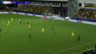 ในนาทีที่ 20 ฮอกใช้ส้นเท้าส่งบอลอย่างนุ่มนวลให้เฟลล์ยิงอย่างเยือกเย็น ส่งโบโด/กลิมท์ขึ้นนำ 1-0 ในนาทีที่ 30 การเปิดบอลของบาเรลล่าสร้างความโกลาหลในกรอบเขตโทษ ทำให้เอสปิซิโตพลิกตัวและยิงประตูตีเสมอได้สำเร็จ จุดประกายความหวังให้กับอินเตอร์อีกครั้ง