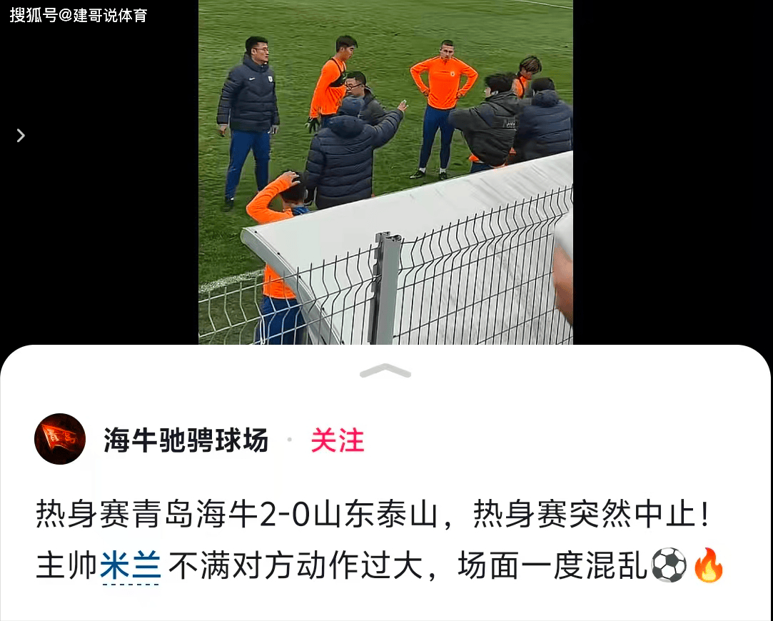 วันที่ 25 กุมภาพันธ์ เวลาปักกิ่งทีมชิงเต่าไห่เนียวและซานตงไท่ซาน สองทีมจากมณฑลซานตงที่ฝึกซ้อมในเซี่ยงไฮ้ ได้แข่งขันนัดกระชับมิตร ผลการแข่งขันจบลงด้วยชัยชนะของชิงเต่าไห่เนียวเหนือซานตงไท่ซานด้วยสกอร์ 3-2 สำหรับการแข่งขันครั้งนี้ จุดสนใจของแฟนบอลทั้งสองฝ่ายไม่ได้อยู่ที่ผลการแข่งขัน แต่เป็นการปะทะกันระหว่างโค้ชทั้งสองทีม ตามรายงานจากสื่อท้องถิ่นของชิงเต่า มีการมองว่าโค้ชของซานตงไท่ซานได้ให้ความสำคัญกับแผนการเล่นมากเกินไปในระหว่างการแข่งขัน ซึ่งเป็นเพียงแมตช์กระชับมิตรเท่านั้น