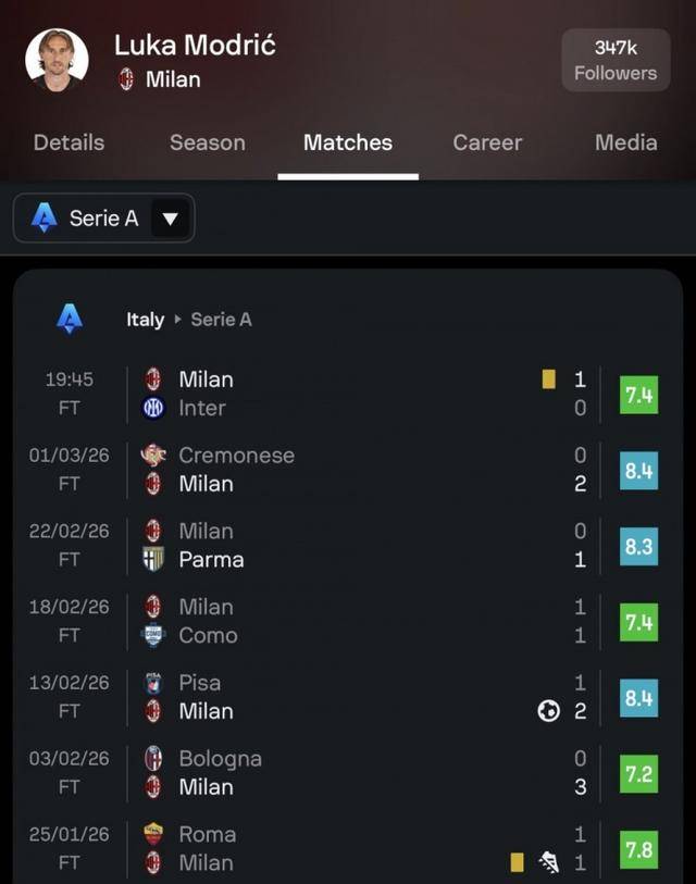 Sofascore ให้ Modric วัย 40 ปี 7.4 คะแนนแก่ Modric วัย 40 ปีในแคมเปญนี้ คะแนนจาก 7 เกมหลังสุดทั้งหมดสูงกว่า 7 คะแนน และคะแนนเฉลี่ยคือ 7.8 ต่อเกม คุณแน่ใจหรือว่านี่คือทหารผ่านศึกอายุ 40 ปี?