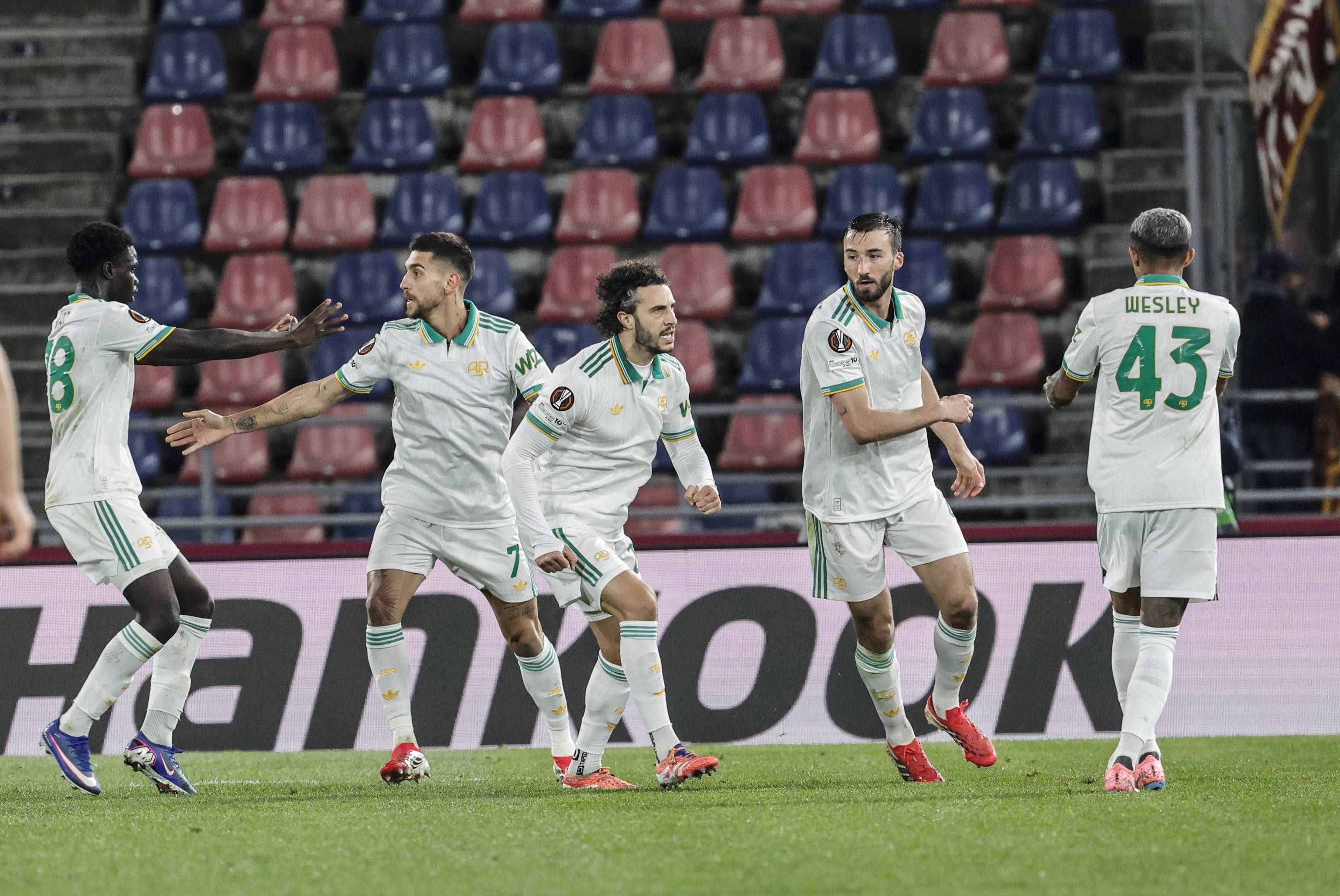 เมื่อวันที่ 12 มีนาคม ผู้เล่นของโบโลญญา เบอร์นาเดซี (ที่สองจากขวา) ยิงประตูและเฉลิมฉลองกับเพื่อนร่วมทีมของเขา สำนักข่าวซินหัว/OU XIN