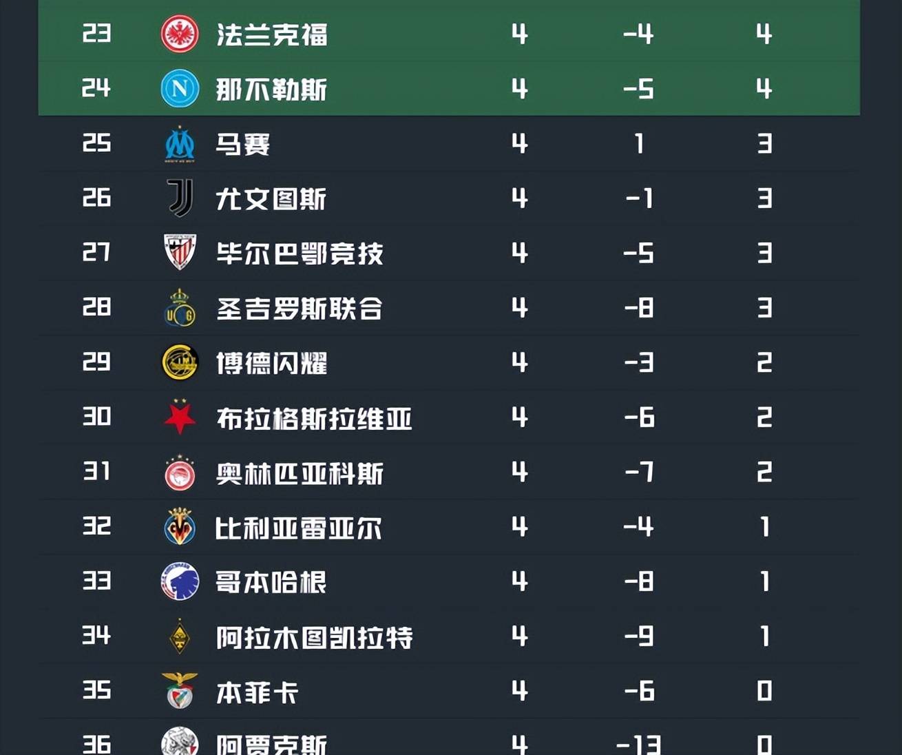 รอบที่สี่ของยูฟ่าแชมเปียนส์ลีกฤดูกาล 2025/26 ได้สิ้นสุดลงในช่วงเช้าตรู่ของวันที่ 6 พฤศจิกายน ตามเวลาปักกิ่ง ซึ่งนำมาซึ่งการเปลี่ยนแปลงที่สำคัญในตารางคะแนนกลุ่มพรีเมียร์ลีกครองตำแหน่งแปดอันดับแรกของการคัดเลือก โดยคว้าครึ่งหนึ่งของตำแหน่งและแสดงผลงานที่น่าประทับใจที่สุด ในเซเรีย อา อินเตอร์ มิลาน เป็นตัวแทนเพียงทีมเดียวในแปดอันดับแรก ในขณะที่ผลงานโดยรวมของอีกสามทีมจากอิตาลีกลับไม่น่าประทับใจนัก ในขณะเดียวกัน อดีตแชมป์ยูฟ่าแชมเปียนส์ลีกอย่างอาแจ็กซ์และเบนฟิก้า ต่างประสบความพ่ายแพ้ติดต่อกันสี่นัด ทำให้ต้องเผชิญกับสถานการณ์ที่ลำบาก