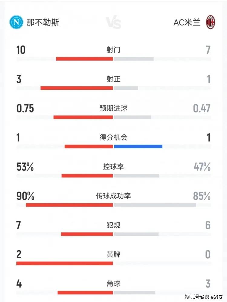 สถิติทางเทคนิคโดยรวมยังทำให้ตื่นตาตื่นใจ: นาโปลียิง 10 นัด 3 นัดหรือยิงเข้าเป้า และคาดว่าจะได้คะแนน 0. 75 ลูกเพียง 7 นัด ยิง 1 นัด หรือยิงประตู คาดว่าจะได้ 0 47 ในเกม "หนึ่งประตูสู่ชัยชนะ" มิลานไม่เพียงแพ้ผลการแข่งขัน แต่ยังแพ้กระบวนการ - อัตราการครองบอลรวมของนาโปลีอยู่ที่ 53% และอัตราการผ่านสำเร็จคือ 90% ในขณะที่มิลานอยู่ที่ 47% และ 85% ในสองเทอมนี้ แนวรับที่กดขี่ของเนเปิลส์ทำให้มิดฟิลด์และแบ็คคอร์ทของมิลานถูกบล็อกซ้ำแล้วซ้ำเล่า และการรวมกันของโมดริชและราบิโอดูเหมือนจะไม่มีอำนาจที่จะบังคับให้คู่ต่อสู้มีความใกล้ชิดสูง