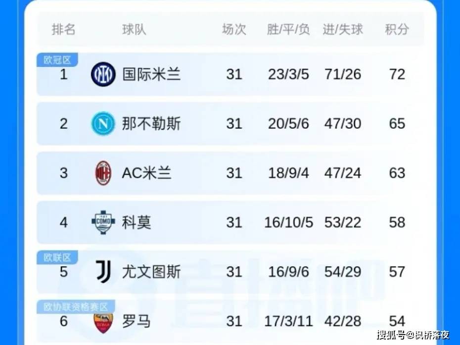 ปัจจุบัน ในอันดับ อินเตอร์ มิลาน อยู่ในอันดับต้น ๆ ของโลก เนเปิลส์ขึ้นสู่อันดับสองด้วยคะแนน 65 แต้ม และเอซี มิลานมี 63 แต้มต่ออันดับที่สาม เหลือ 7 รอบ หลัง 9 แต้มตามหลังรายการ และเขาต้องเผชิญหน้ากับยูเวนตุส (ตามหลัง 6 แต้ม) โรม และแอตแลนต้า กำลังจับตาดูตำแหน่งมิลาน ซึ่งประกาศอย่างเป็นทางการว่าไม่ถูกต้องในรอบที่ 31