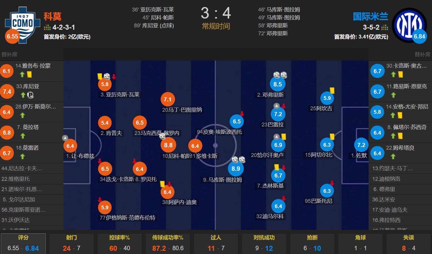เมื่อเวลา 02:45 น. ของวันที่ 13 เมษายน ตามเวลาปักกิ่ง รอบที่ 32 ของกัลโช่ เซเรีย อา ได้นำบทสนทนาที่แข็งแกร่ง โคโมเล่นในบ้านกับอินเตอร์ มิลาน อดีตแข่งขันกันสี่คนและหลังแข่งขันเพื่อชิงแชมป์