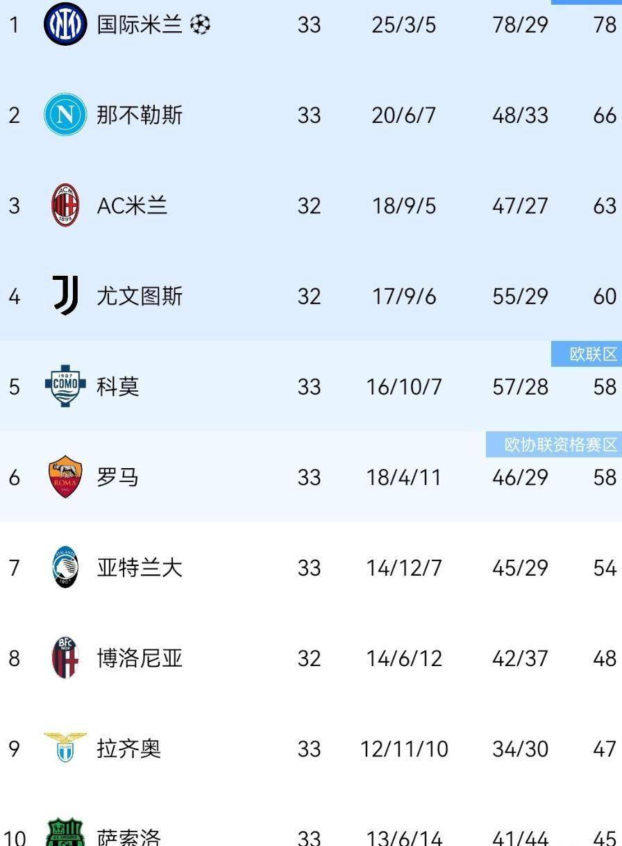 สมรภูมิจริงอยู่ในอันดับที่สาม เอซี มิลาน 63 แต้ม และ ยูเวนตุส 60 แต้ม พวกเขามีความคิดริเริ่มอย่างแท้จริงในการแข่งขันทั้งสี่รายการ Como และ Roma มีตัวชี้ 58 ตัว และพวกเขากำลังไล่ตามกัน แต่พวกเขาทั้งหมดเป็นเกมเดียวมากกว่ามิลานและยูเวนตุส