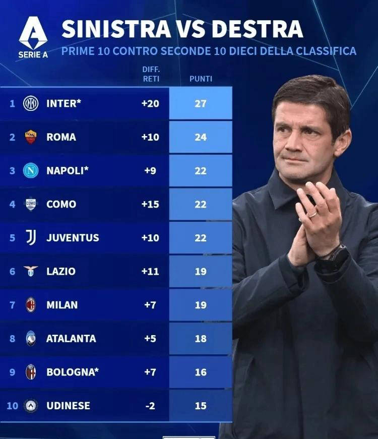 เมื่อเร็ว ๆ นี้ เว็บไซต์ตลาดการซื้อขายนักเตะฟุตบอลเยอรมันได้เผยแพร่ตารางคะแนนของทีมชั้นนำ 10 อันดับแรกของเซเรียอาที่พบกับทีมที่มีอันดับต่ำกว่าในฤดูกาลนี้ โดยอินเตอร์ มิลานครองอันดับหนึ่งด้วยคะแนน 27 คะแนน ข้อมูลแสดงให้เห็นว่าพวกเขาสามารถคว้าชัยชนะได้ทั้งหมด 9 นัดที่พบกับทีมที่มีอันดับกลางถึงล่าง แสดงให้เห็นถึงความสม่ำเสมอและความเหนือชั้นอย่างน่าทึ่ง ผลงานอันยอดเยี่ยมนี้เมื่อเทียบกับทีมที่อ่อนกว่านั้นทั้งน่าประทับใจและเป็นปัจจัยสำคัญที่สนับสนุนการนำในลีกของพวกเขาในปัจจุบัน