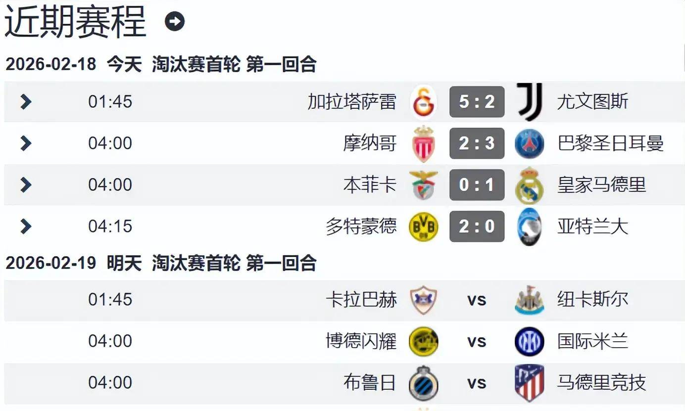 ในช่วงเช้าตรู่ของวันที่ 18 กุมภาพันธ์ ตามเวลาปักกิ่ง มีการแข่งขัน 4 คู่ในรอบเพลย์ออฟของยูฟ่าแชมเปียนส์ลีก ทีมจากลีกใหญ่ต่างลงสนามแข่งขันกัน สร้างความตื่นเต้นทั้งในและนอกสนาม แม้ว่าการแข่งขันจะได้รับความสนใจจากแฟนบอลอย่างมาก แต่ทีมจากเซเรียอากลับทำผลงานได้อย่างน่าผิดหวัง ลีกเอิง 1 เกิดเหตุการณ์ปะทะกันที่ถูกจับตามองอย่างใกล้ชิด ขณะที่การพบกันระหว่างเรอัล มาดริด และเบนฟิก้า ก็จุดประกายให้เกิดการถกเถียงอย่างมาก