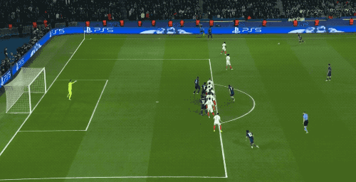 ในนาทีที่ 50 ปารีสได้รับลูกฟรีคิกทางฝั่งขวา การโหม่งของเนเวสถูกคูห์นบล็อกได้อย่างน่าประหลาดใจ
