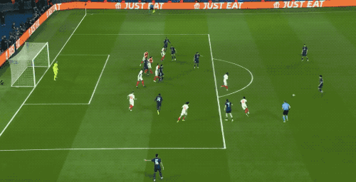 ในนาทีที่ 41 ปารีส แซงต์-แชร์กแมง ทำการส่งบอลอย่างไหลลื่น ก่อนที่บอลจะไปถึงบาลอตelli ที่ทำการยิงลูกโค้งเฉียงไปชนกับคานประตู