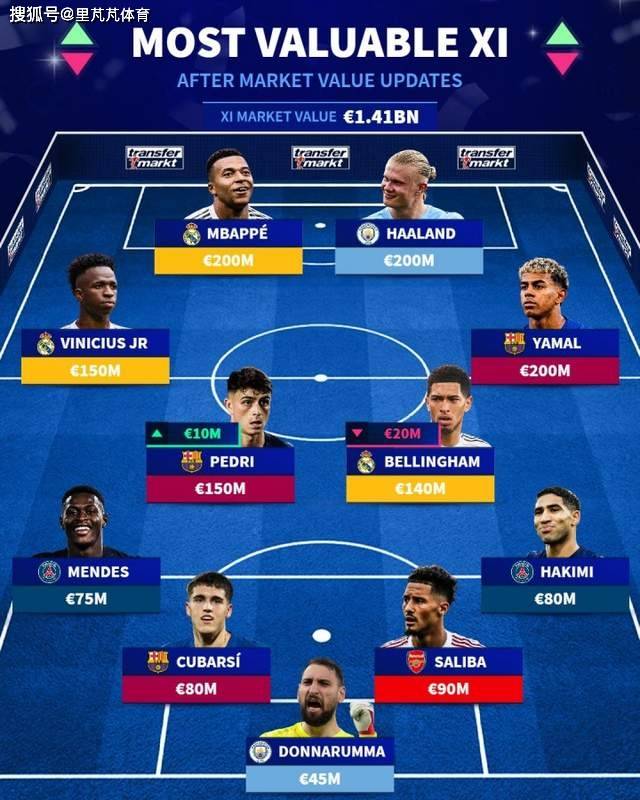 แผ่นเสียงเยอรมันมีผู้เล่นตัวจริงที่แพงที่สุดในฟุตบอลล่าสุดและมูลค่ารวมคือ 14 100 ล้านยูโร Mbappe, Harland และ Yamal ทั้งหมด 200 ล้านยูโร