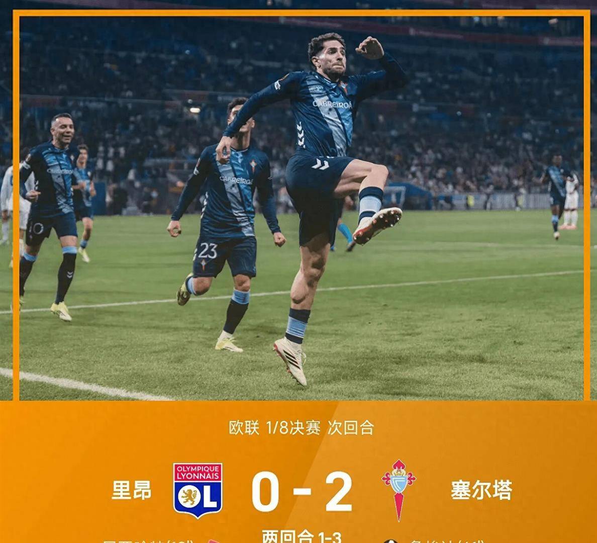 เซลต้า ของ ลา ลีกา เอาชนะ ลีลิส ที่เอาชนะ ลีก เอิง 1-0 ไป ทำคะแนนรวม 3-1 ลียงถูกไล่ออกในนาทีที่ 19 ของเกม และเกมส่วนใหญ่พ่ายแพ้ให้กับคนน้อยกว่าหนึ่งคน