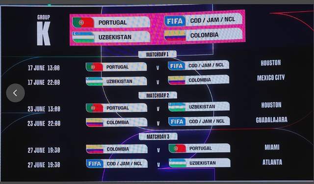 ในรอบแบ่งกลุ่ม FIFA World Cup ปี 2026 ฟีฟ่าเฉลี่ยสูงสุดอันดับสี่คือกลุ่ม K กลุ่มนี้ประกอบด้วยโปรตุเกส (ที่ 5), คองโกประชาธิปไตย (46), อุซเบกิสถาน (50), โคลอมเบีย (ที่ 13) และอันดับเฉลี่ยคือ 28 5 บิต ตัวเอกของกลุ่มคือ โปรตุเกส ซึ่งได้เข้าร่วมการแข่งขัน 7 สมัยติดต่อกัน คริสเตียโน โรนัลโด ตำนานวัย 41 ปี ยังคงอยู่ในสถานะของเขา นอกจากนี้ยังมีพรสวรรค์ของเยาวชนชั้นนำของโลก เช่น วิทิเนีย และโนโน เมนเดส ในตำแหน่งต่างๆ และได้รับการยกย่องว่าเป็นที่ชื่นชอบอันดับต้นๆของกลุ่ม