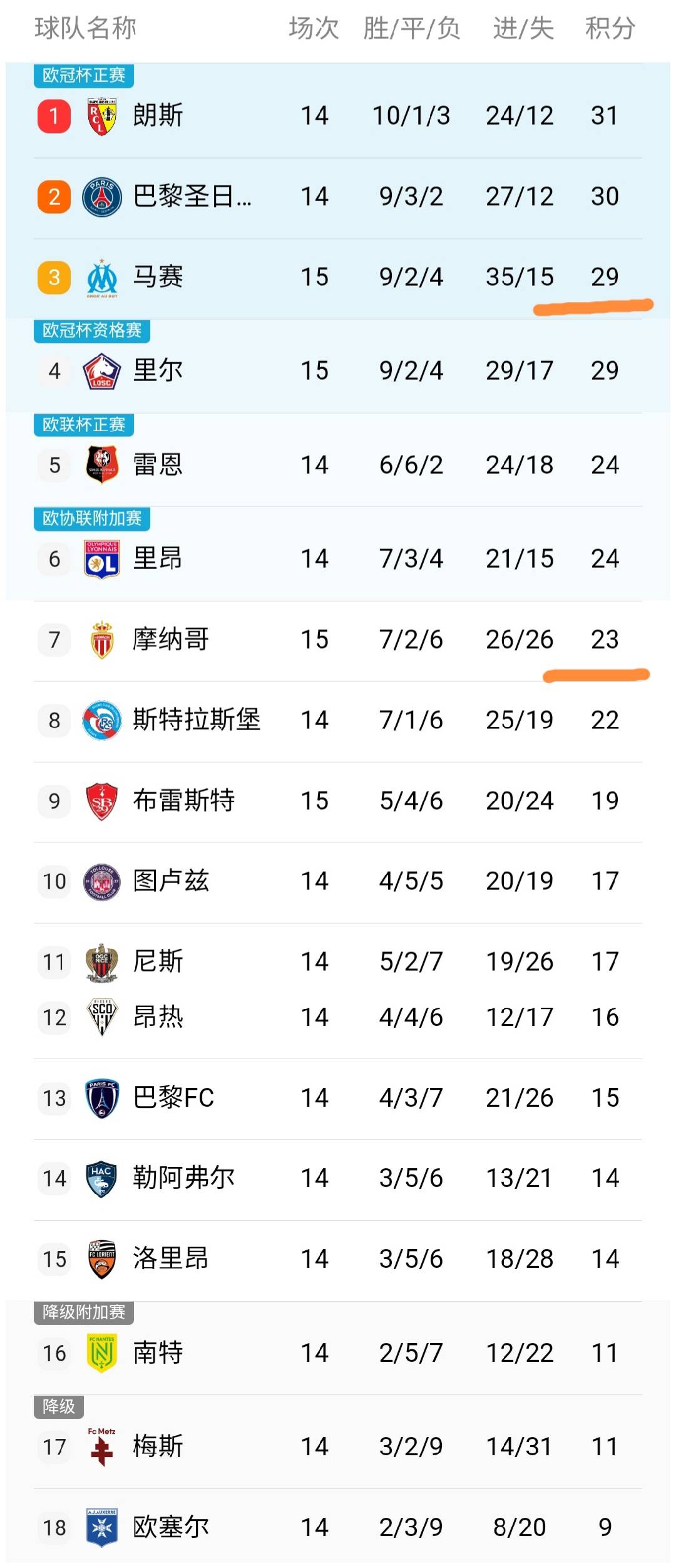 หลังจากมาร์กเซยแพ้ 0-1 และโมนาโกแพ้ 0-1 อันดับล่าสุดของลีกเอิงได้ถูกประกาศออกมาแล้ว: ปารีส แซงต์-แชร์กแมง ไม่ได้เป็นจ่าฝูงของตาราง เลนส์นำเป็นจ่าฝูง โดยมีคีเลียน เอ็มบัปเป้เป็นผู้นำ