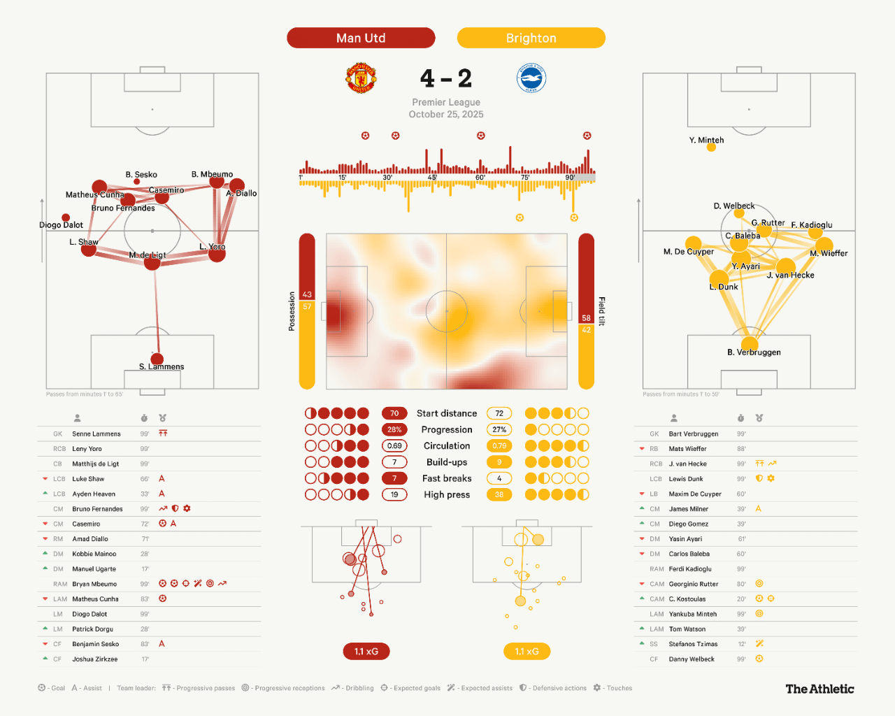 ระหว่างชัยชนะของแมนเชสเตอร์ ยูไนเต็ด เหนือไบรท์ตัน เมื่อคาเซมิโรทำประตูด้วยการยิงไกล เซอร์จิม แรตคลิฟฟ์ เจ้าของสโมสรได้ลุกขึ้นจากที่นั่งบนอัฒจันทร์เพื่อปรบมือให้เซอร์จิม ซึ่งอาจกล่าวได้ว่าเป็นหนึ่งในสมาชิกคณะกรรมการของยูไนเต็ดที่ไม่ค่อยชื่นชอบกองกลางตัวรับชาวบราซิลรายนี้มากที่สุด ได้เคยออกมาวิจารณ์การเซ็นสัญญาของเขาว่าเป็น "เงินโง่" อย่างเปิดเผยมาก่อน อย่างไรก็ตาม ในเกมนี้ คาเซมิโร่สามารถทำหนึ่งแอสซิสต์และหนึ่งประตู พร้อมกับห้าการตัดบอลและสามการเข้าสกัด—ผลงานที่สมควรได้รับเสียงปรบมือจากประธานสโมสรอย่างแท้จริง เมื่อรูเบน อโมริมเปลี่ยนตัวเขาออก โมเมนตัมของเกมก็เปลี่ยนไปอย่างชัดเจน ขณะที่ไบรท์ตันซึ่งตามหลังอยู่ 0-3 สามารถยิงได้สองประตู