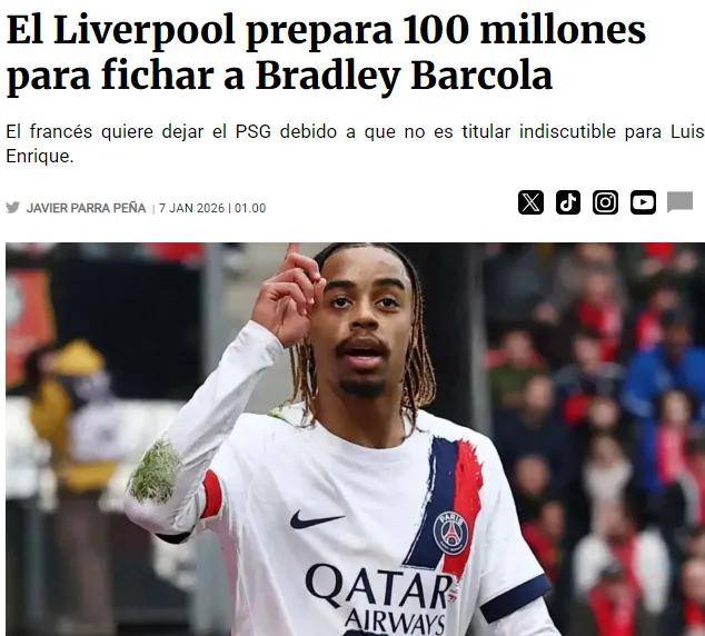เมื่อวันที่ 8 มกราคม ตามเวลาปักกิ่ง สื่อสเปน Fichajes รายงานว่า ลิเวอร์พูลกำลังเตรียมยื่นข้อเสนออย่างเป็นทางการที่มีมูลค่าสูงสำหรับกองหน้าของปารีส แซงต์-แชร์กแมง บาร์โคลา โดยข้อเสนอจะสูงถึง 100 ล้านยูโร ซึ่งสโมสรมองว่าการลงทุนจำนวนเก้าหลักในนักเตะวัย 23 ปี เป็นข้อเสนอที่สมเหตุสมผล โดยเชื่อว่าศักยภาพและฟอร์มการเล่นในปัจจุบันของเขาคุ้มค่ากับการเดิมพัน