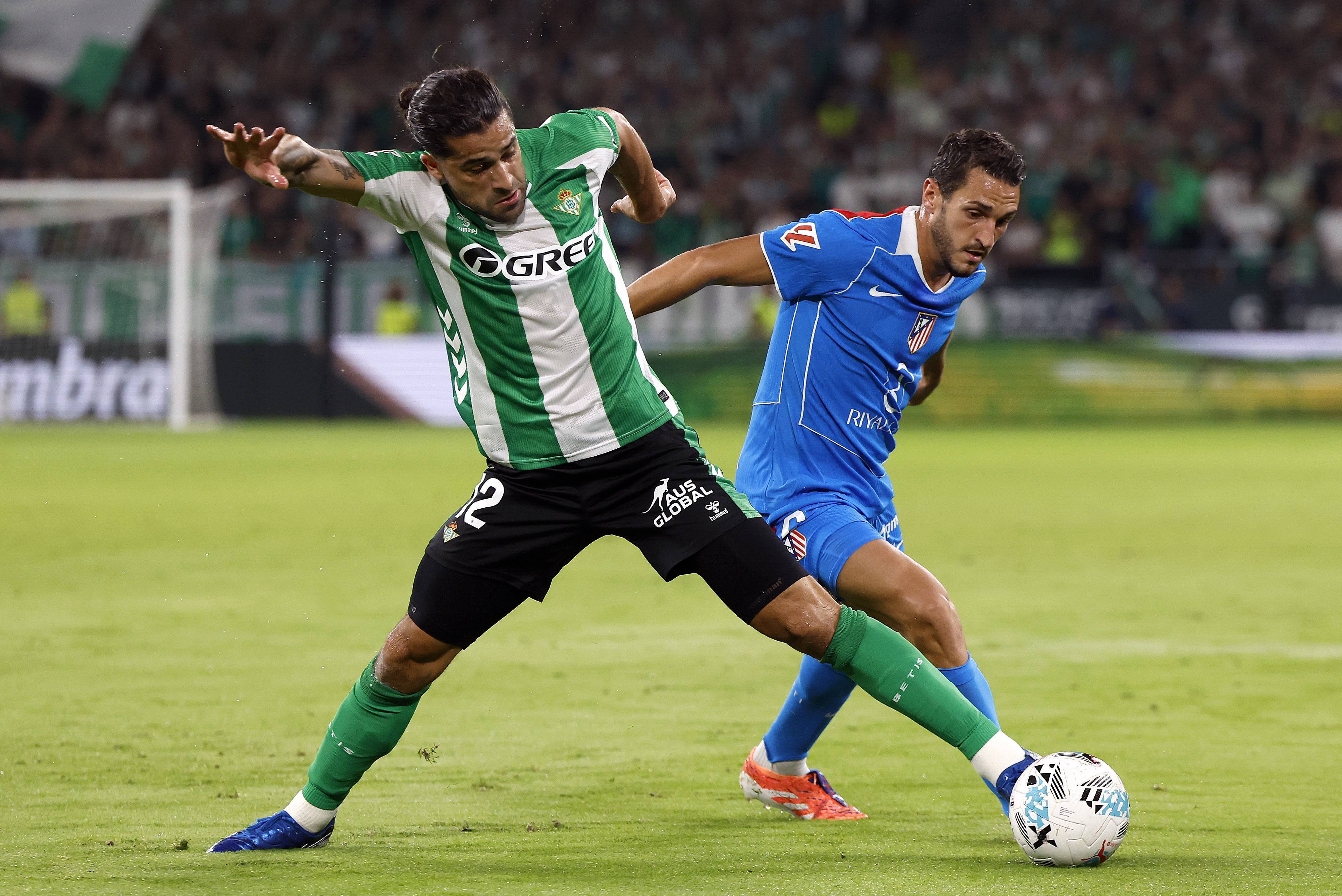 เมื่อวันที่ 27 ตุลาคม โจเซ่ กิเมเนซ ของแอตเลติโก มาดริด (ขวา) เข้าปะทะกับแอนโธนี ของเรอัล เบติส เพื่อแย่งบอล. ซีนา/อีพีเอ
