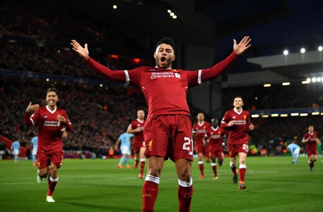 สำหรับแฟนบอลลิเวอร์พูล ประตูที่น่าตื่นตาตื่นใจที่สุดของอเล็กซ์ อ็อกซ์เลด-แชมเบอร์เลนเกิดขึ้นในนัดแรกของรอบก่อนรองชนะเลิศยูฟ่าแชมเปียนส์ลีกฤดูกาล 2017-18ในการแข่งขันนั้น เชมเบอร์เลนยิงประตูระยะไกลอย่างยอดเยี่ยม ช่วยให้ลิเวอร์พูลเอาชนะแมนเชสเตอร์ ซิตี้ไปอย่างขาดลอย 3-0 ผลการแข่งขันนี้ได้สร้างรากฐานที่มั่นคงสำหรับการผ่านเข้าสู่รอบรองชนะเลิศของแชมเปียนส์ลีก และทำให้เขาได้รับฉายาว่า "แชมเบอร์เลน เดอะ มูน" ในฤดูกาลเดียวกันนั้น เชมเบอร์เลนมีบทบาทสำคัญในการพาทีมลิเวอร์พูลเข้าสู่รอบชิงชนะเลิศแชมเปียนส์ลีก