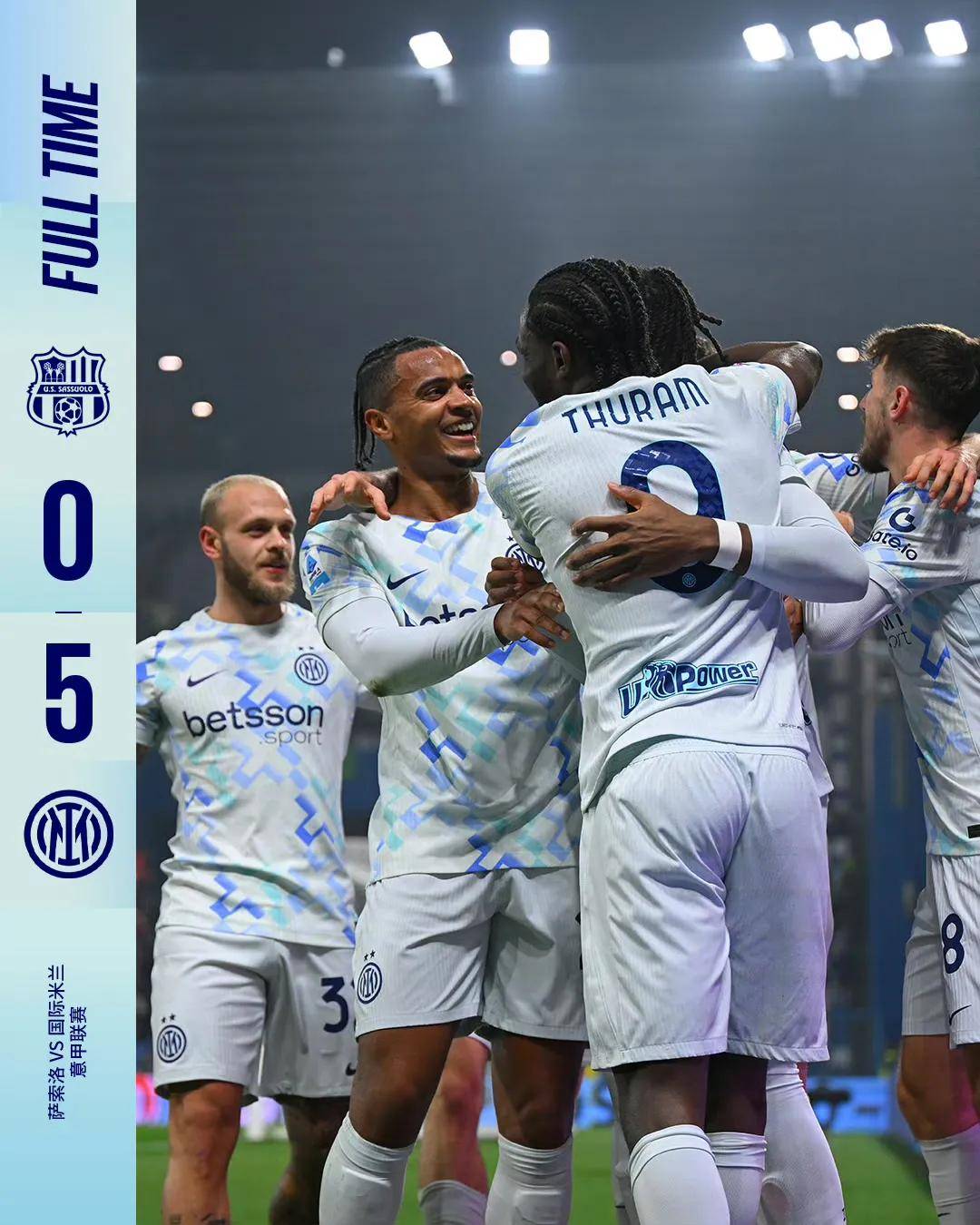 ความพ่ายแพ้อย่างราบคาบ! อินเตอร์ มิลาน แสดงฟอร์มการเล่นที่ยอดเยี่ยมที่สุดของฤดูกาลในเกมเยือน คว้าสามแต้มไปครองอย่างง่ายดาย หลังจากชัยชนะครั้งนี้ เนรัซซูร์รี ขึ้นนำเป็นจ่าฝูงของตารางด้วยคะแนน 58 คะแนน นำห่าง 8 คะแนน ซึ่งแทบไม่เหลือข้อสงสัยเกี่ยวกับความสามารถในการคว้าแชมป์ของพวกเขาเลย ขณะที่ ซาสซูโอโล่ ต้องเผชิญกับความพ่ายแพ้อย่างหนัก ทำให้พวกเขาตกไปอยู่ในอันดับที่ต่ำกว่าเดิม