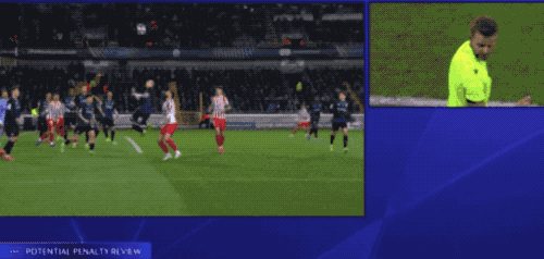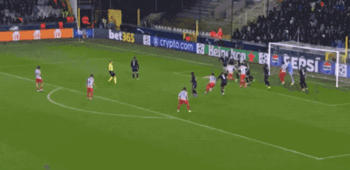 ในนาทีที่ 51 ลูกเตะมุมจากบรูจส์ทำให้เกิดความโกลาหลในเขตโทษของแอตเลติโก ออบลัคทำการเซฟอย่างปาฏิหาริย์ แต่โอนเยกาสามารถยิงซ้ำเข้าไปได้