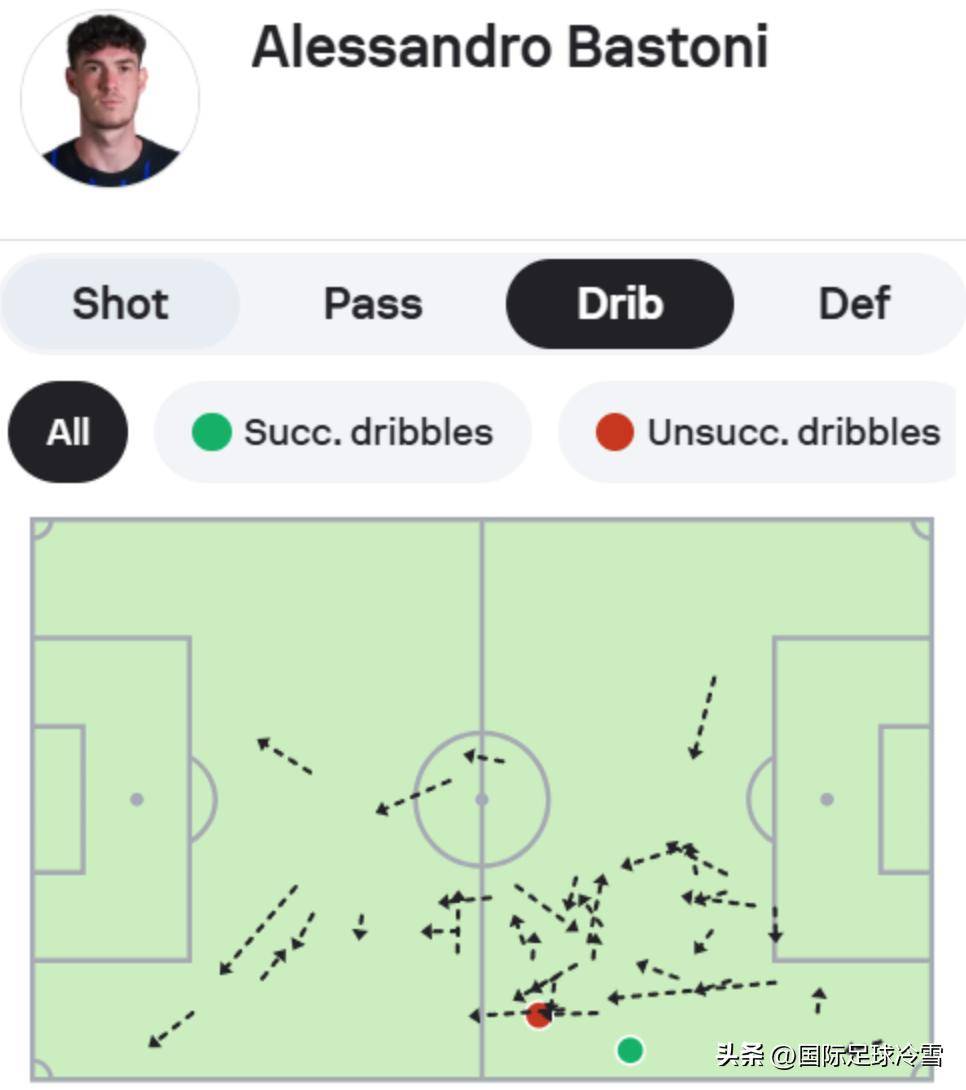 อย่างไรก็ตาม แม้จะมีข้อผิดพลาดในการส่งบอลไปข้างหน้าหลายครั้งในนัดนี้ บทบาทการจัดการของบาสยังคงไม่อาจปฏิเสธได้: เขาทำการเลี้ยงบอลสำเร็จ 40 ครั้ง ครอบคลุมระยะทางทั้งหมด 289 เมตร โดย 155.4 เมตรนั้นเป็นการเคลื่อนที่ไปข้างหน้า ในฐานะแรงขับเคลื่อนที่แท้จริงของอินเตอร์ คุณค่าของกองหลังที่แข็งแกร่งคนนี้ไม่อาจประเมินต่ำได้