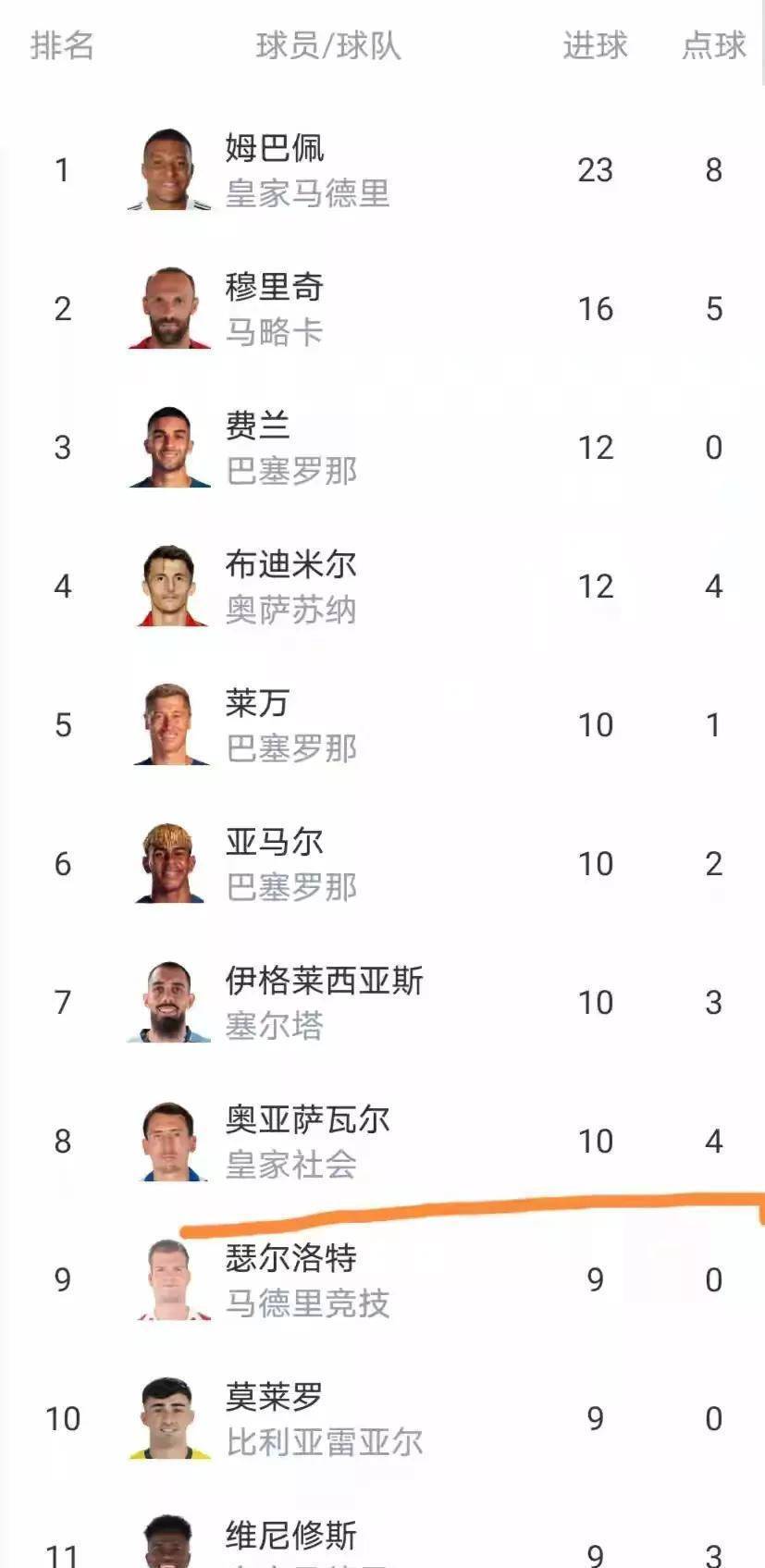 มูริช จากมายอร์กา อยู่ในอันดับสองด้วยจำนวน 16 ประตู ตามมาด้วย เฟร์ราน ตอร์เรส และบูดีเมียร์ ที่มี 12 ประตูเท่ากัน ขณะที่เลวานดอฟสกี้, ยามาล, อิเกลเซียส และโอเยร์ซาบาล ต่างก็ทำประตูถึงเลขสองหลักแล้ว ซึ่งกลุ่มผู้นำนี้ถือว่ามีความแข็งแกร่งอย่างมาก