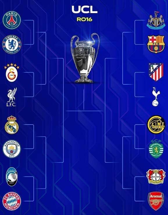 เมื่อวันที่ 27 กุมภาพันธ์ การจับสลากรอบน็อคเอาท์ของยูฟ่าแชมเปียนส์ลีกได้จัดขึ้น รอบ 16 ทีมสุดท้ายปีนี้มีการพบกันของทีมใหญ่หลายคู่: เรอัล มาดริด และแมนเชสเตอร์ ซิตี้ ต้องเผชิญหน้ากัน, ปารีส แซงต์-แชร์กแมง พบกับเชลซี, ขณะที่อาร์เซนอลจับสลากพบกับไบเออร์ เลเวอร์คูเซ่น