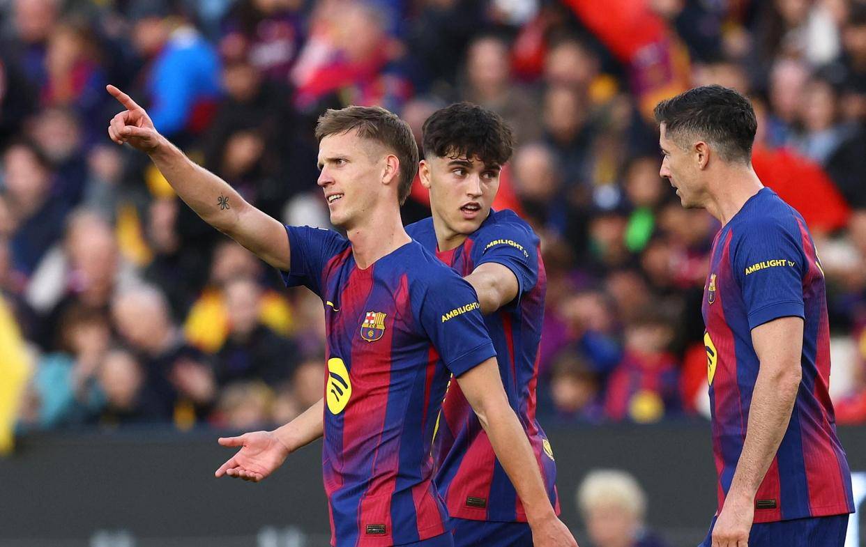 ในนาทีที่ 28 กองกลาง เฟร์มิน สกัดบอลได้ในพื้นที่สุดท้ายและส่งบอลเฉียงอย่างแม่นยำ ลามีน ยามาล อ่านเกมได้อย่างสมบูรณ์แบบ วิ่งไปข้างหน้าอย่างรวดเร็ว หลีกเลี่ยงกับดักล้ำหน้าได้สำเร็จจนได้บอลแบบตัวต่อตัวกับผู้รักษาประตู เขาค่อยๆ ยิงบอลเข้ามุมไกลด้วยเท้าซ้าย ส่งบอลเข้าประตูไปอย่างเยือกเย็น ทำให้บาร์เซโลนาขึ้นนำ